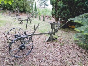 W swoich zbiorach rolnik posiada również maszyny rolnicze. Wiele z nich pamięta jeszcze czasy dziadków pana Adama. Na uwagę zasługuje pług obracany, który ciągnięty był przez konia. – „Mam sentyment do tych maszyn, są one dla mnie wyjątkowe, ponieważ pracowały w tym gospodarstwie i są niejako częścią mojej historii.” Jest też pług i kultywator dopasowane do sprowadzanych ciągników. Maszyny z tamtych lat mają delikatniejsze cięgna, wszystko musi do siebie pasować.